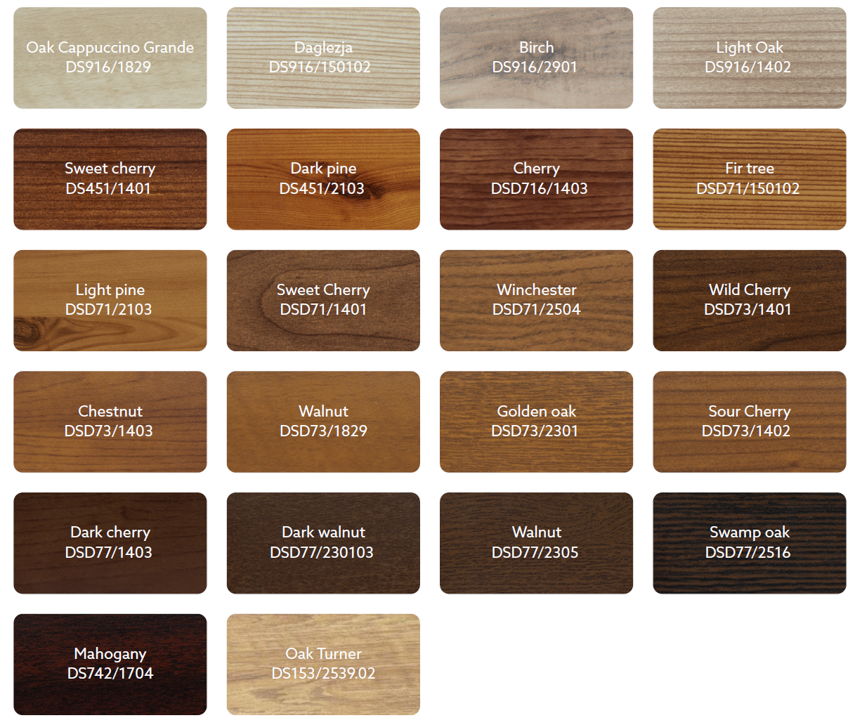 Povrchové úpravy napodobující dřevo v nabídce Yawal zaručují co nejvěrnější napodobení přírodní krásy dřeva. Široká škála barev naší firmy je sblížená paletě výrobců truhlářských výrobků z PVC, díky čemuž ideálně doplňuje jejich nabídky v rozsahu velkorozměrových konstrukcí, jako jsou řešení typu HS.