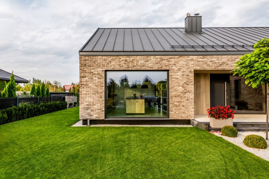 Niewątpliwą zaletą tego rozwiązania jest możliwość szklenia konstrukcji od zewnątrz bez konieczności wnoszenia ciężkich przeszkleń do wnętrza budynku. Takie ułatwienia montażowe szczególnie cenią sobie firmy wykonawcze, w tym wypadku przedsiębiorstwo Zimny Sp. z o.o. Okna w budynku wykonano w oparciu o system okienno-drzwiowy TM 102HI. Wszystkie konstrukcje w domu zostały wyposażone w żaluzje elewacyjne, które zapewniają użytkownikom komfort i prywatność.