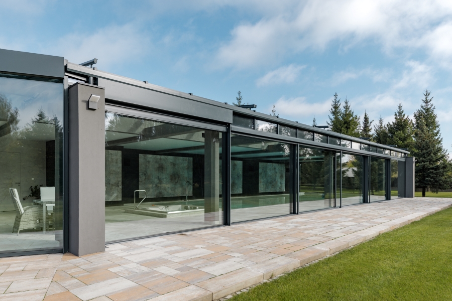 Kluczowym elementem tej inwestycji są imponujące, wielkogabarytowe drzwi przesuwne Moreview o długości 22 metrów.